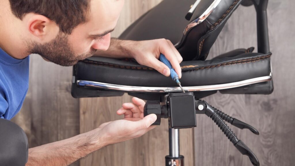 Vaak zit het probleem in losse bevestigingsbouten. Draai de stoel om en zoek naar de bouten die de rugleuning aan het frame bevestigen. Draai deze bouten stevig vast met een geschikte schroevendraaier of inbussleutel.